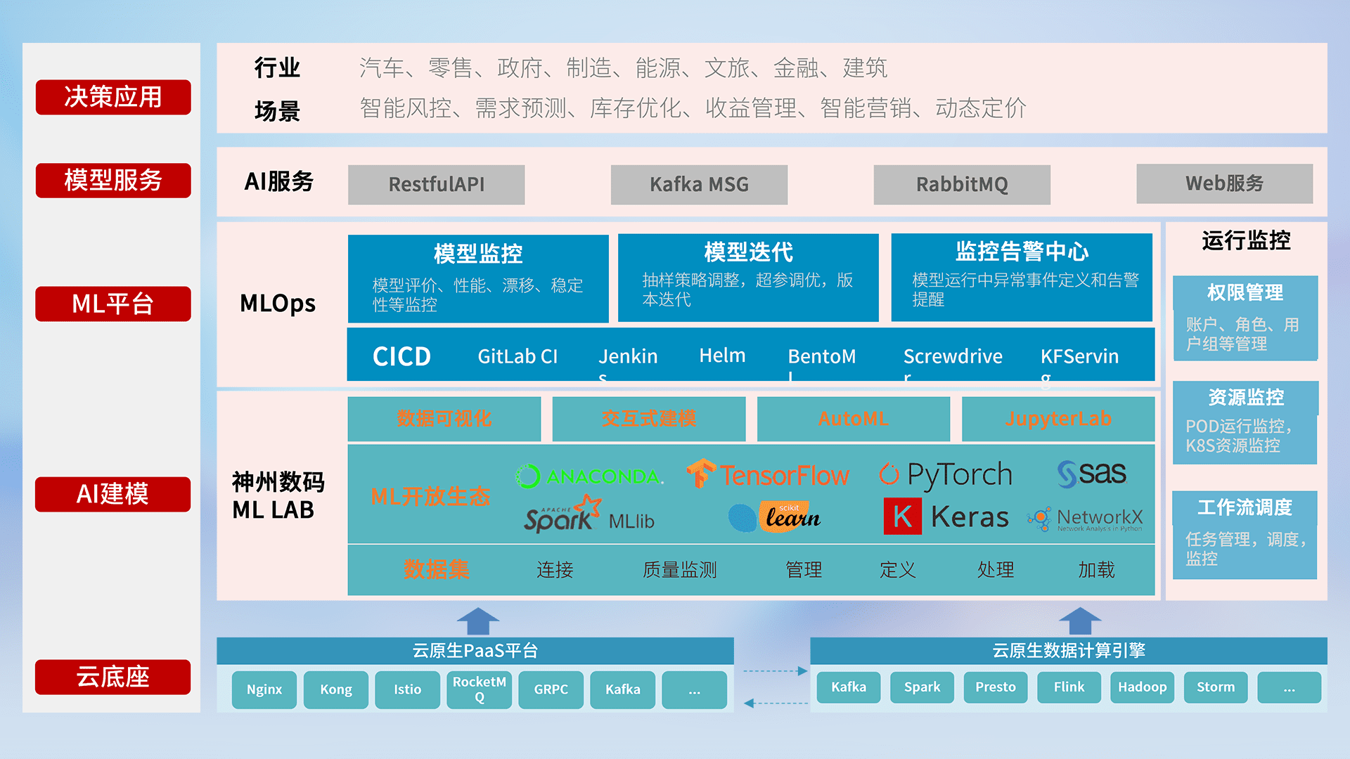 数据+模型双引擎驱动,,,面向智能服务场景,,,快速灵活利用AI技术,,支持业务决策,,,,助力企业智能化转型破局。。
